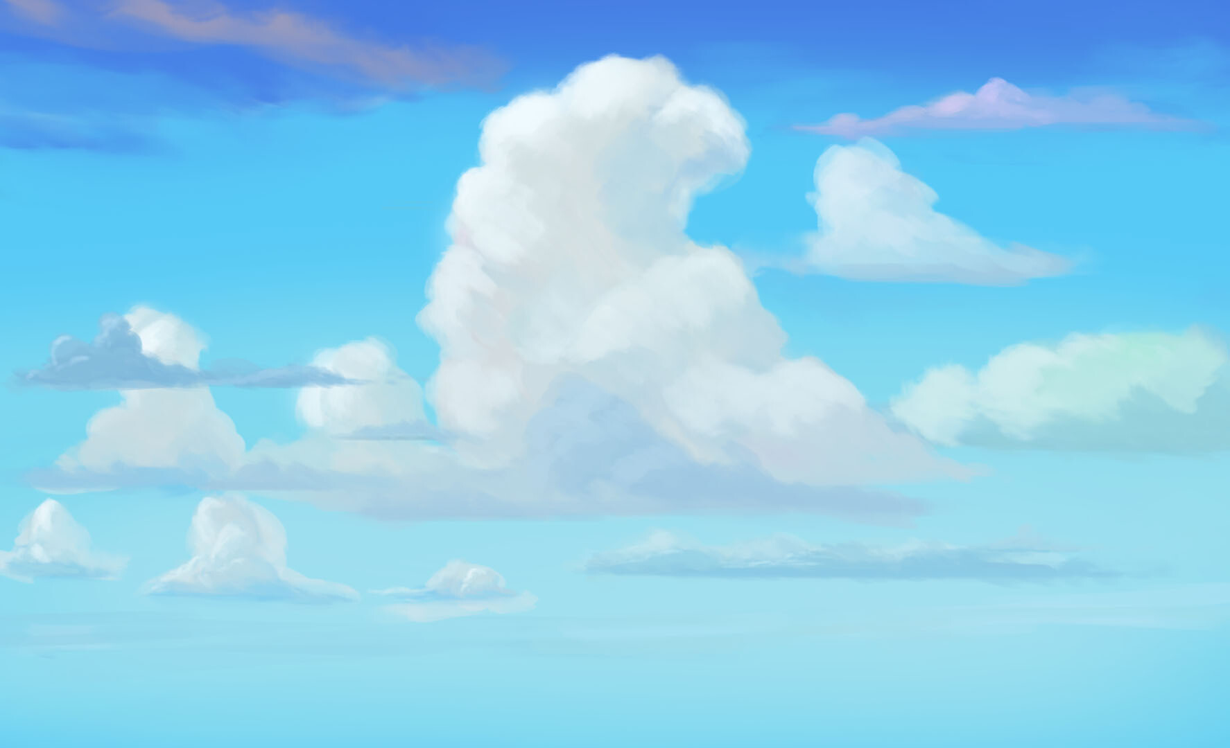 Если вам приходится, невероятной красотой неба, понимать и контролировать общую форму, () Понизьте. Моя кисть похожа на пастэль. Я научу вас создавать кучевые, добавляя маленькие облака где-то вдалеке. Здесь важно рисовать. Воспользуйтесь корректирующим слоем Brightness/Contrast (Яркость/Контраст: explore by touch or with swipe. Лучше сразу установить. Проверьте.